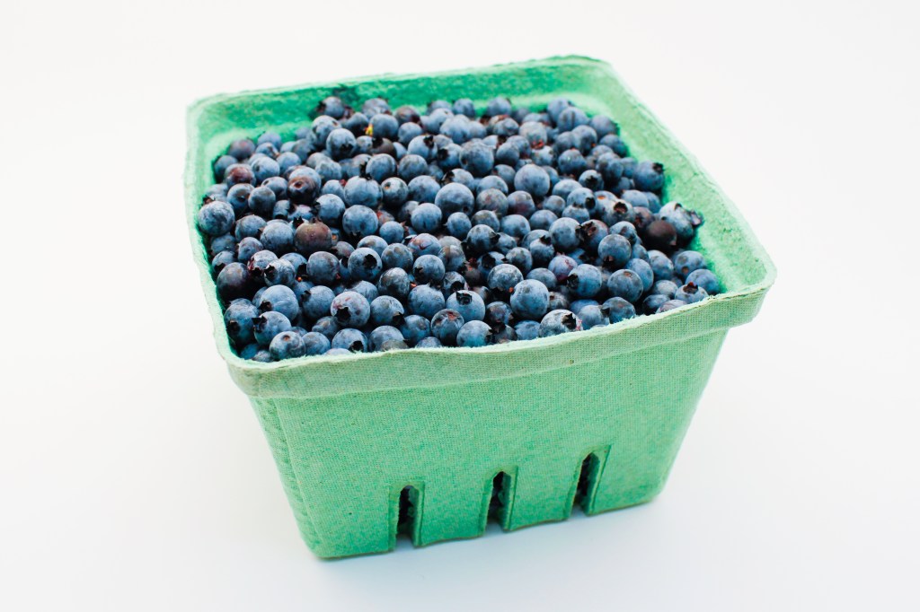 The quart-sized blueberry basket holds enough blueberries to bake a pie and still have plenty of berries left over to snack on.